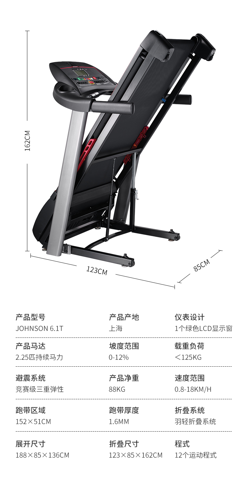 乔山JOHNSON羞羞麻豆国产精品1区2区3区6.1T PLUS升级款 高端折叠家用走步机